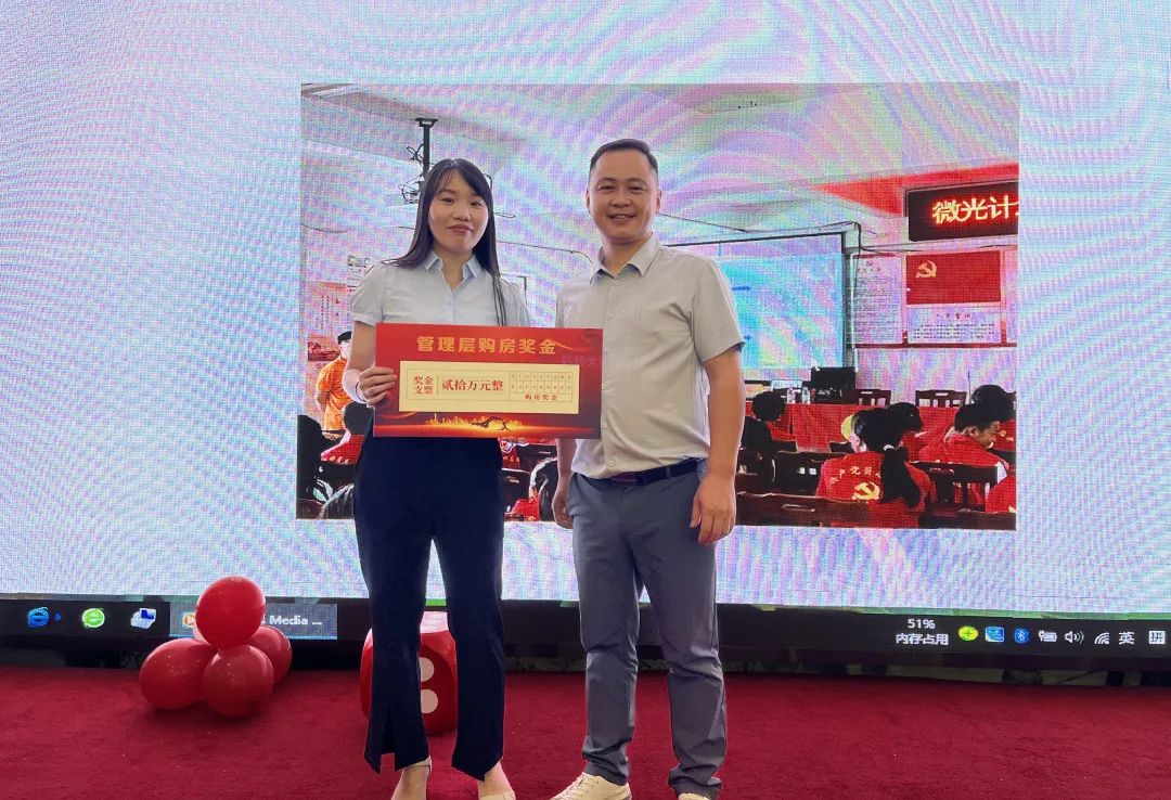 为感谢老员工对迎欣几年如一日的努力付出、感谢老员工对迎欣的忠诚、敬业,公司为资材部经理钟璐琳颁发20万元购房资金补贴,以资鼓励。希望发挥优秀老员工的骨干作用,作新员工的良好表率,让迎欣更上一层楼。