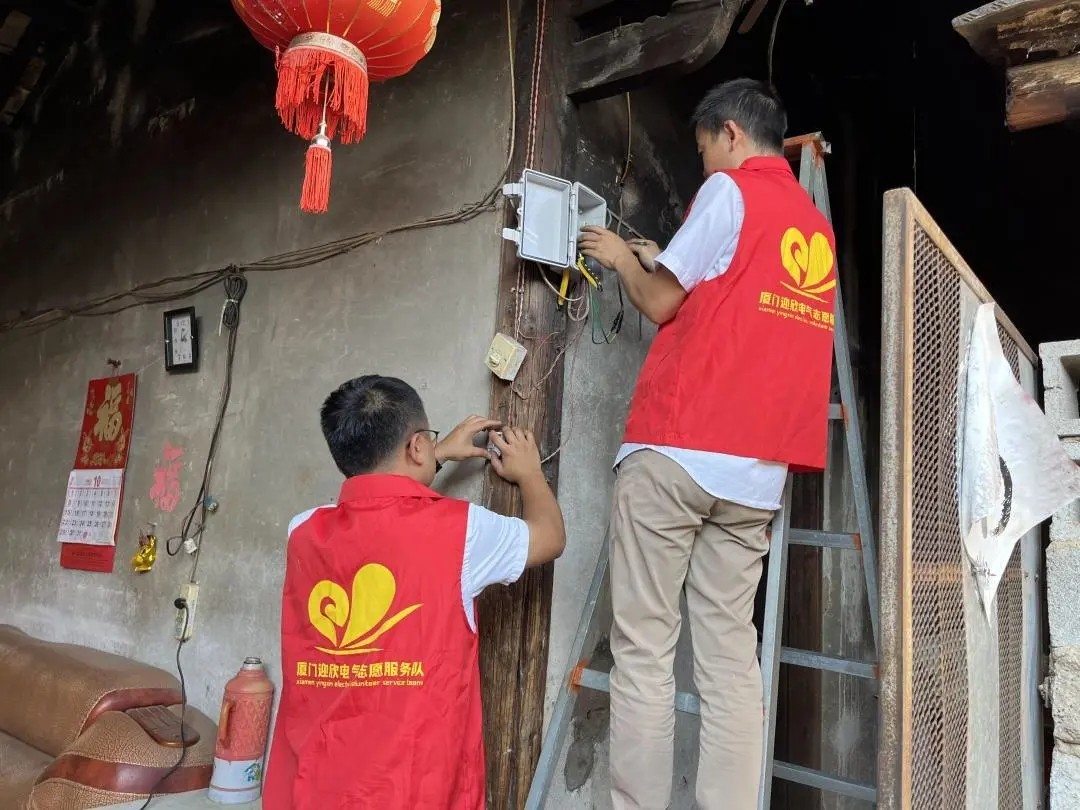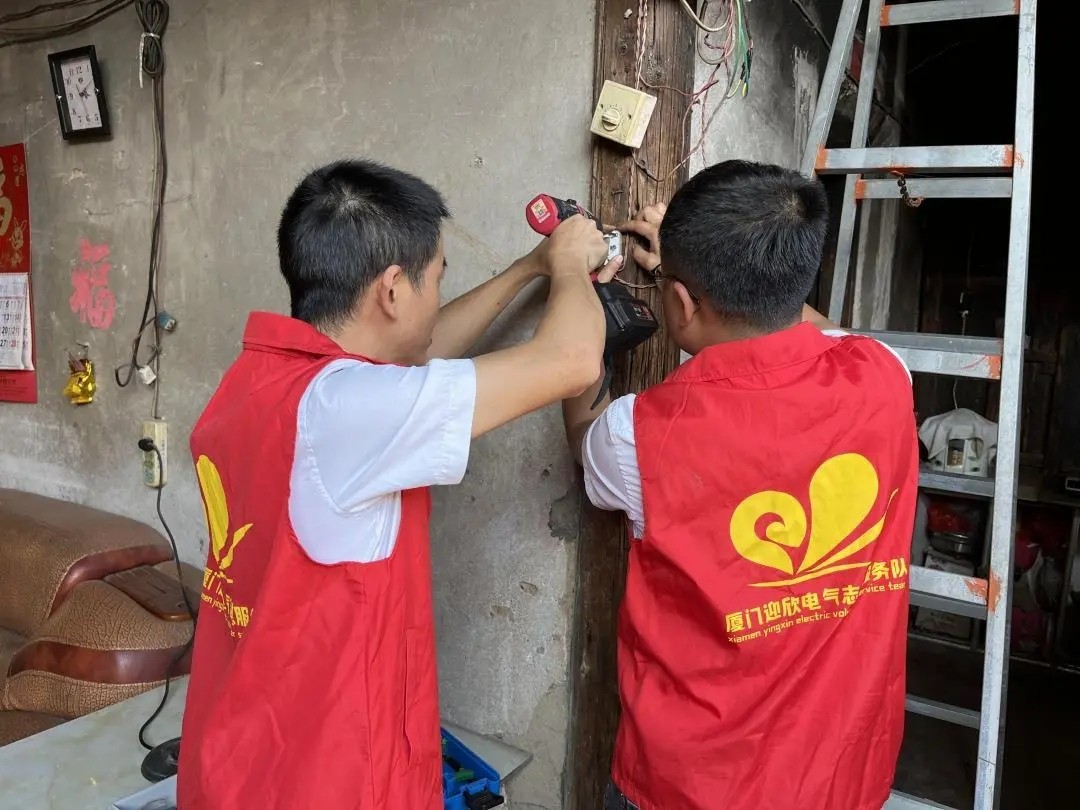 2023年10月30日,厦门迎欣电气携手同心社工中心的“孤困家庭线路·微改造”公益活动继续前行,继续为窑市村的贫困家庭进行线路检修、更换老旧线路、安装防水插座及防水盒等。