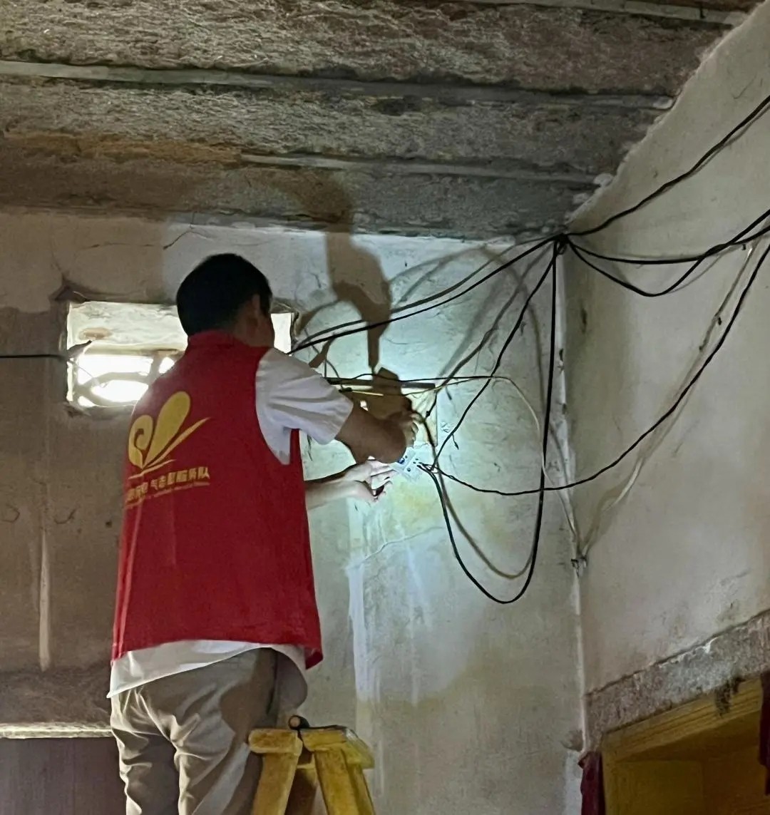 为了确保检修的顺利进行,迎欣和同心共同制定了详细的计划和方案,迎欣电气提供了防水插座、防水盒、维修电路所需的各种设备。到达窑市村后,迎欣电气志愿服务队伍跟随同心社工来到本次需检修的住户家中。迎欣电气电工小李对住户家中电路情况进行仔细的检查,找到了电路故障的原因,排查出了存在的电气隐患,同时记下住户需求之后开始对电路进行改造和维修。